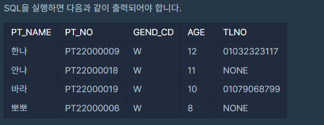 1. SELECT - [12세 이하인 여자 환자 목록 출력하기] _ LEVEL 1