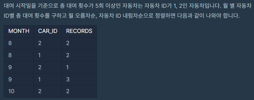 - 전자의 경우 GROUP BY car_id , 후자의 경우 GROUP BY month, car_id