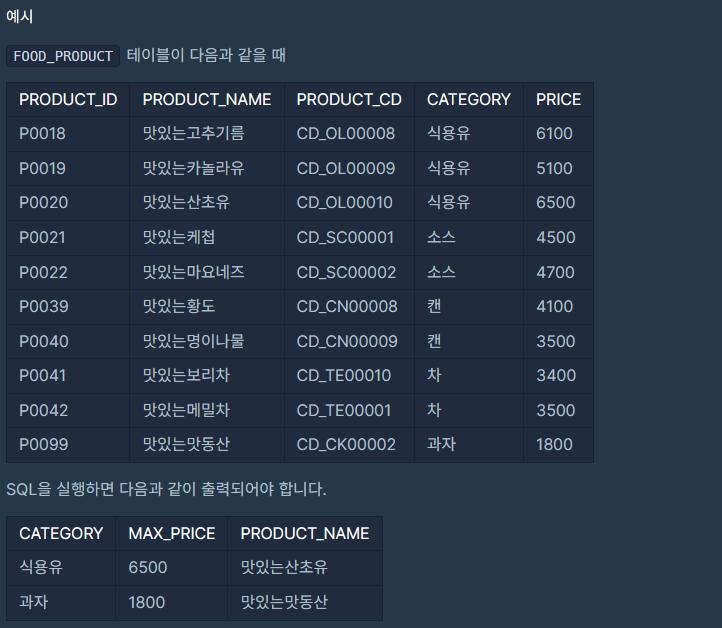 3. GROUP BY - [식품분류별 가장 비싼 식품의 정보 조회하기] _ LEVEL 4