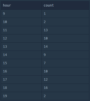 HOUR(datetime) hour
