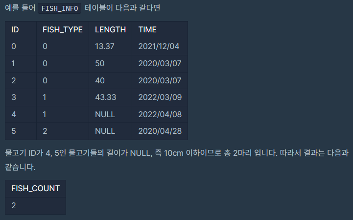 2. SELECT - [잔챙이 잡은 수 구하기] _ LEVEL 1