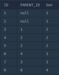 SELECT ID, PARENT_ID, 1 AS Gen