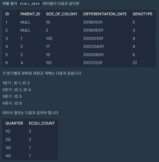 4. String, Date - [분기별 분화된 대장균의 개체 수 구하기] _ LEVEL 2